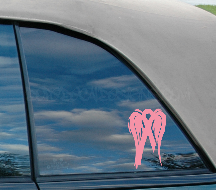 Breast Cancer Awareness Angel Wings Ribbon. All decals are made from high quality 5 year rated sign vinyl. Simple peel and stick application. They can be used on your home, automobile or any clean, flat surface. Custom colors and sizes available. Email for pricing and availability.