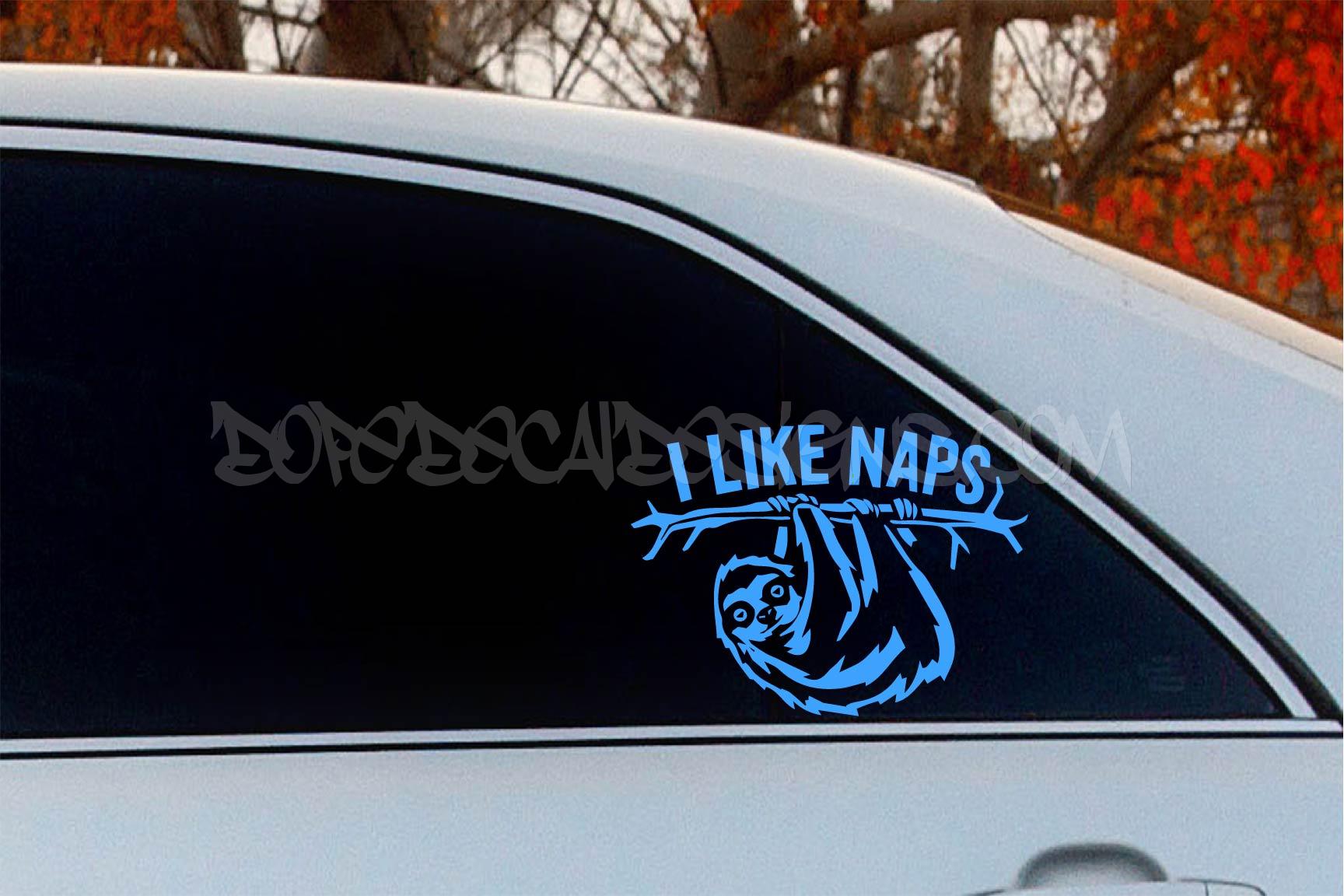 I Like Naps Vinyl Decal. All decals are made from high quality 5 year rated sign vinyl. Simple peel and stick application. They can be used on your home, automobile or any clean, flat surface. Custom colors and sizes available. Email for pricing and availability.